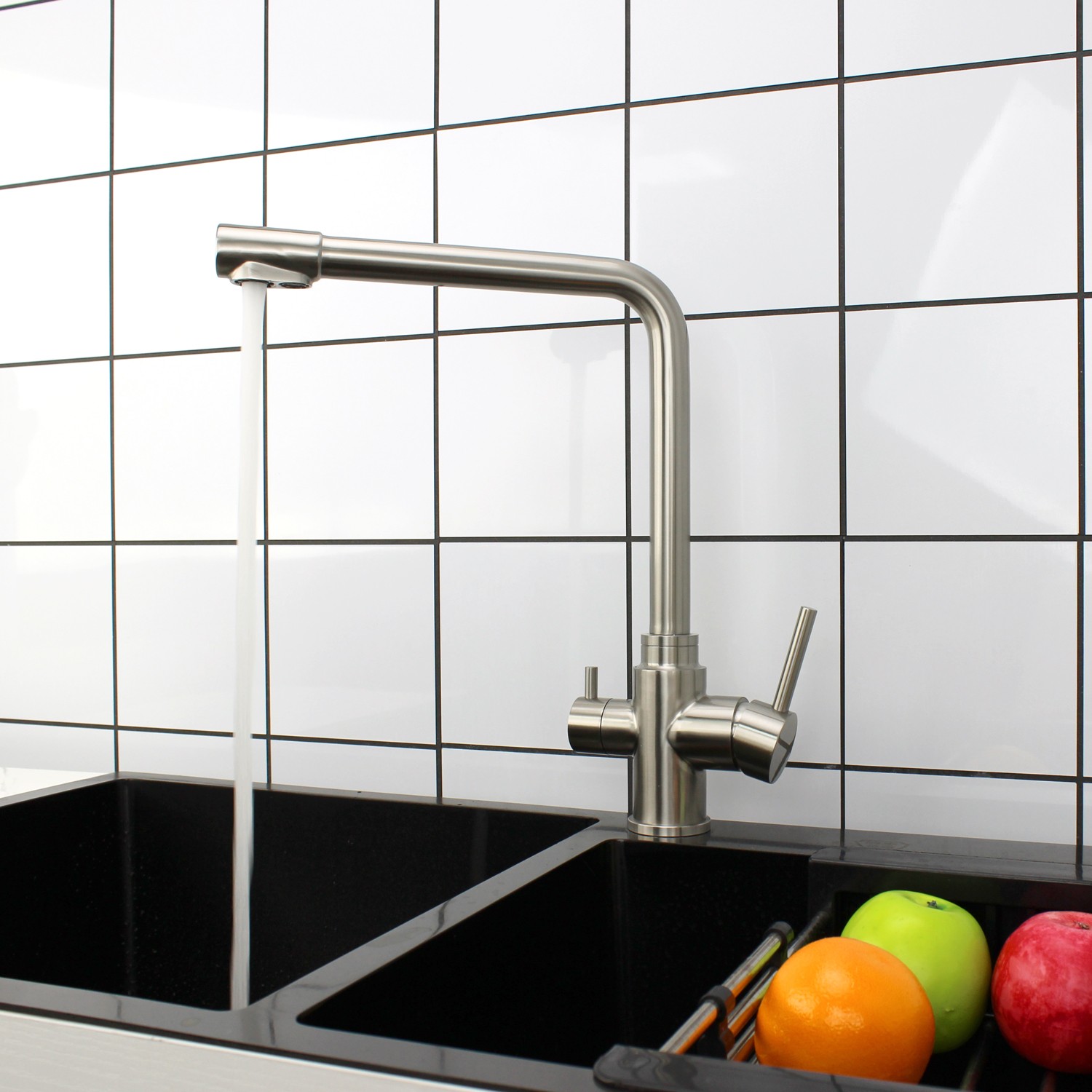 Due to the separeted lines design, it is also possible to obtain both type water at the same time. it is an elegant and practical addition to any osmosis system, especially for larger households and open-plan kicthens.